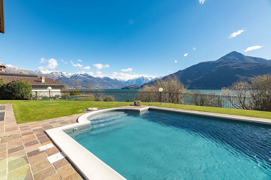 The property is surrounded by a beautiful, fenced garden and patio, all offering breathtaking views of Lake Como and the surrounding Alps and pre-Alps. The 900 square meter private garden features palm trees, an outdoor barbecue and sun beds. The villa has an electronic gate and a private garage with parking for four cars. There are two additional parking spaces within the property's grounds. An infrared sauna and a Jacuzzi with bathroom are available in the basement of the villa.