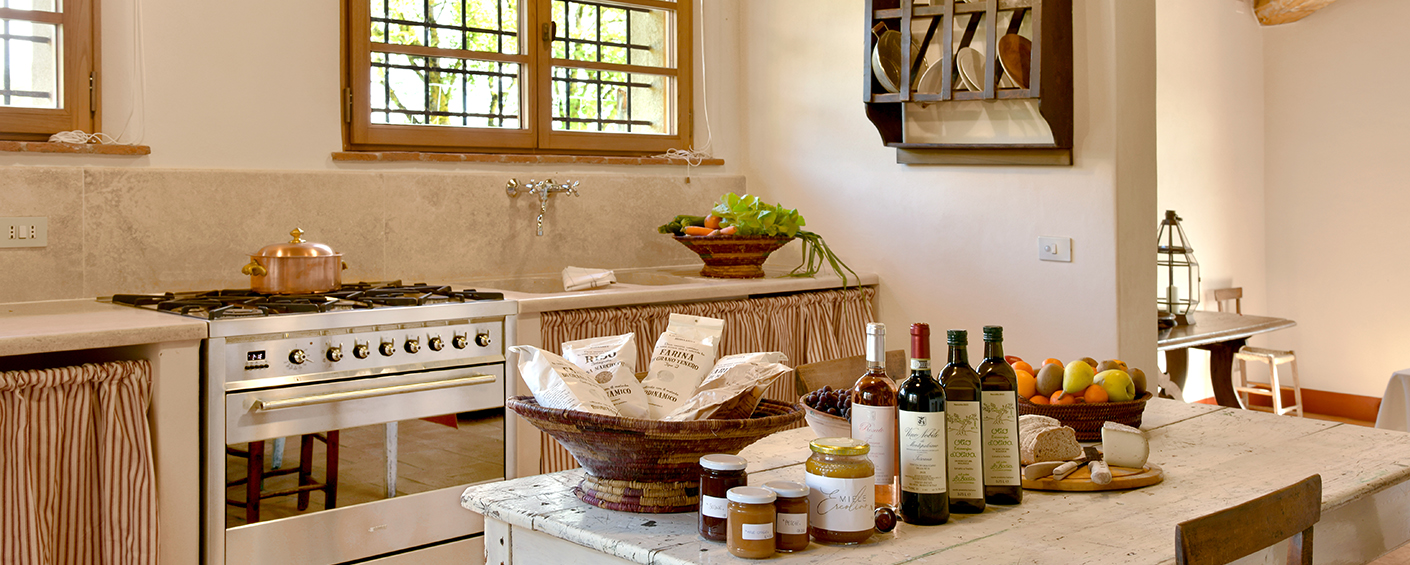EUR 35/40 per person, EUR 25 for children up to 11 years of age. The meal is composed of: antipasto, 1 first course (for example a pasta dish), 1 second course (meat with vegetables and salad), dessert (fruit and cakes). Wine not included. Please book well in advance. Not available on arrival day and on Sunday. Should you wish to have a person lay the table, serve the meal and clean the meal away afterwards, there is an extra fee of EUR 50 at lunchtime and EUR 60 in the evening. When 4 or less guests, the price is always EUR 40 per person. - First shopping: EUR 160. Please enquire for the items are included.