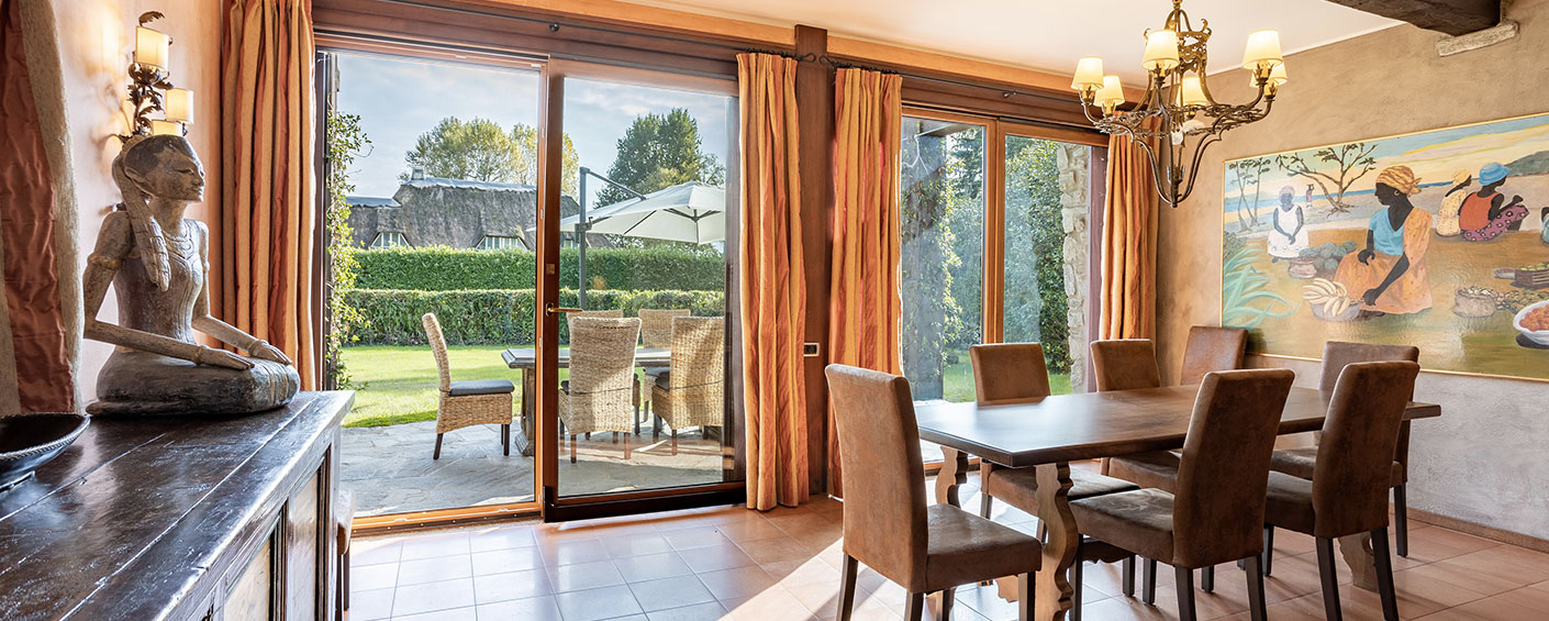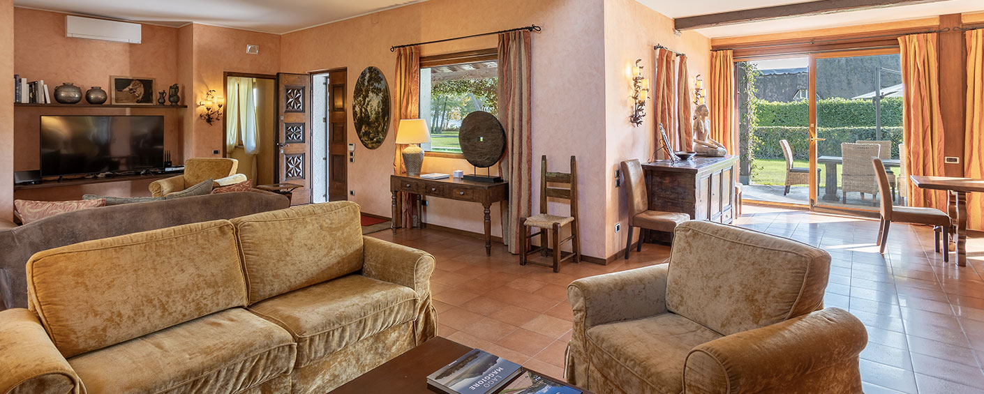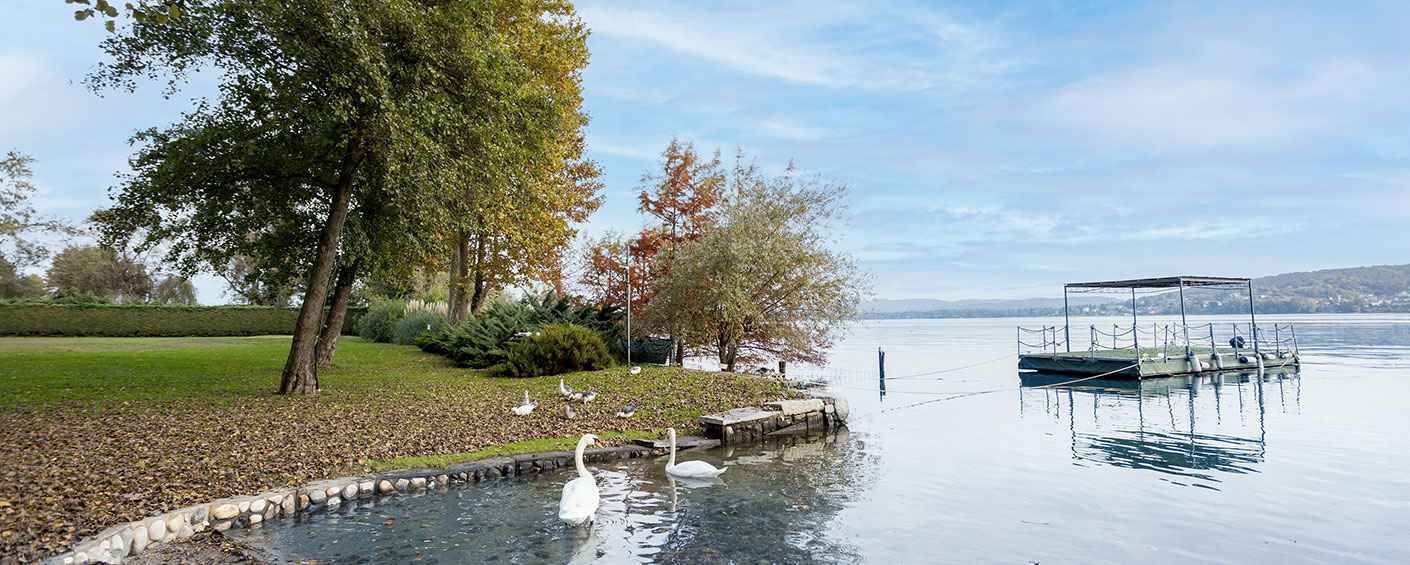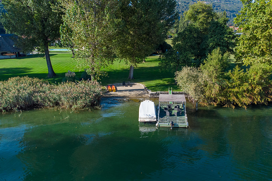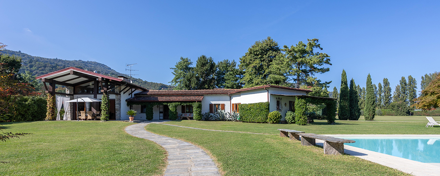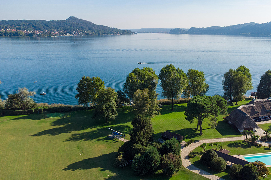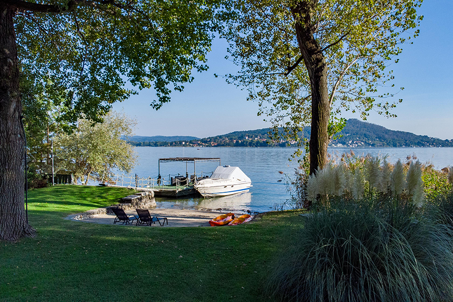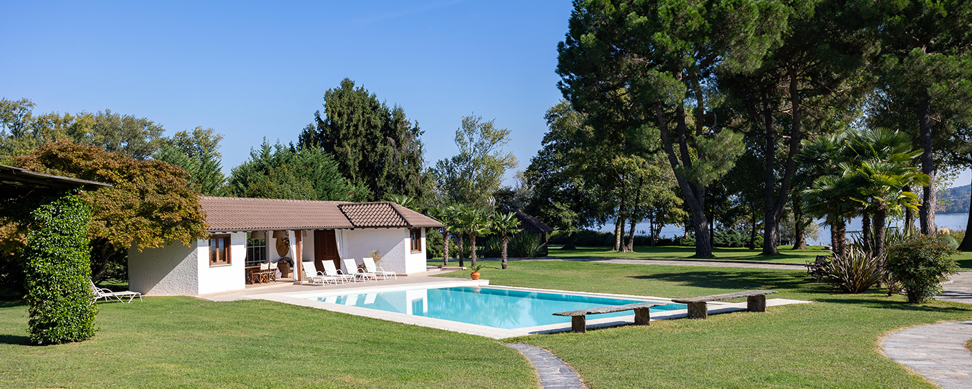 Villa Brinada holds a fabulous lakefront position. It is the perfect place to relax in harmony and luxury and enjoy the attractions of the north Italian lakes. Located half-way between Arona and Stresa, the estate is part of a gated community far from the bustle of the lakeshore road. It is an excellently designed and furnished villa surrounded by twenty acres of lush gardens planted with native flowers, fruit trees and aromatic herbs, and a lawn stretching down to the water.