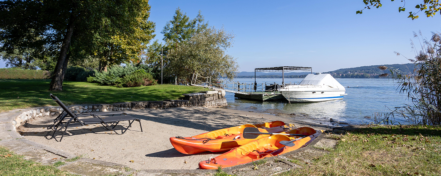 A sports club with tennis courts, sauna, steam bath, fitness centre and a pool is a 10-minute walk from the villa and can be used by guests for a daily or weekly fee. Two golf courses are located within 10-15 minutes' drive, with several more less than an hour away. The ferry to the other lake towns and islands docks at Belgirate (10 minutes walk). Ferry boats go regularly to the three picturesque Borromean Islands: Isola Madre, Isola Bella, and Isola dei Pescatori.