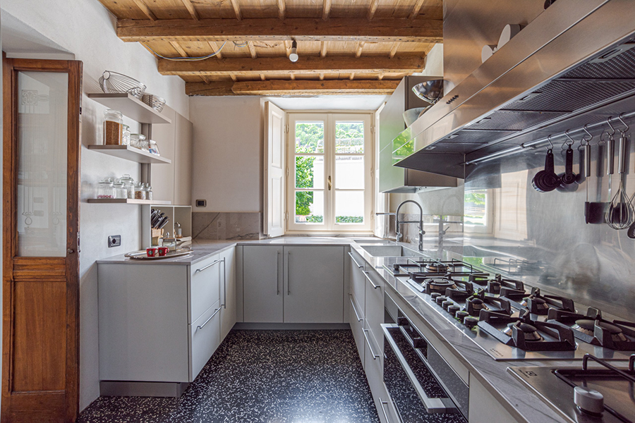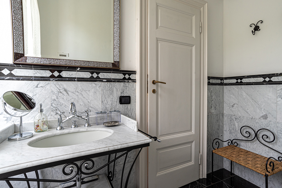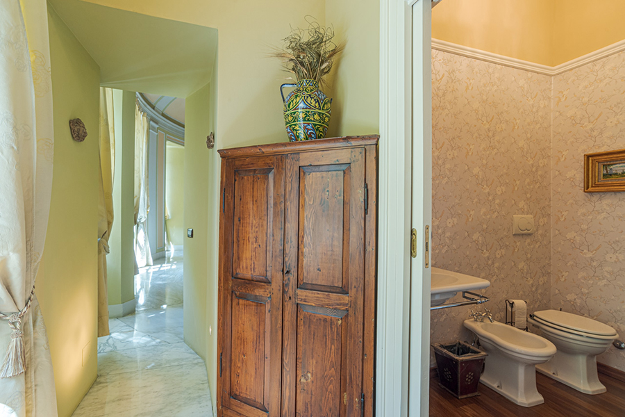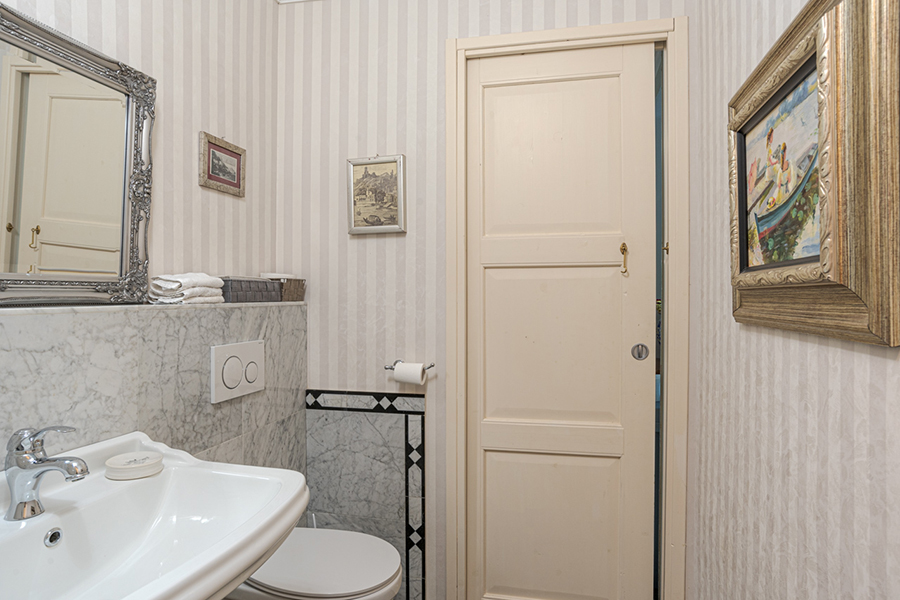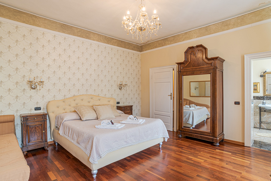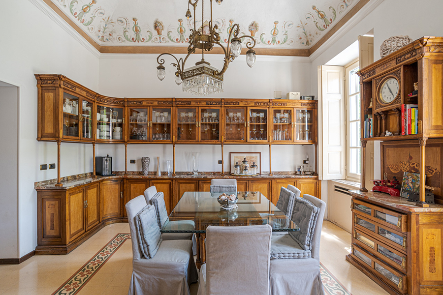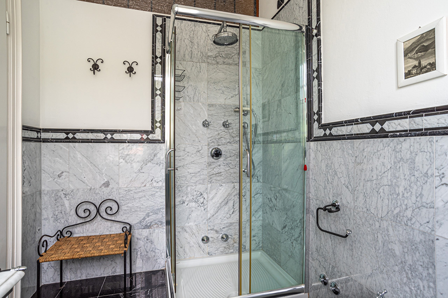 The living room has marble floors, high ceilings, antique furniture, a large chandelier and direct access to the garden overlooking the lake and a path to a lakeside promenade. Furthermore there are a formal dining room and a fully equipped gourmet kitchen.