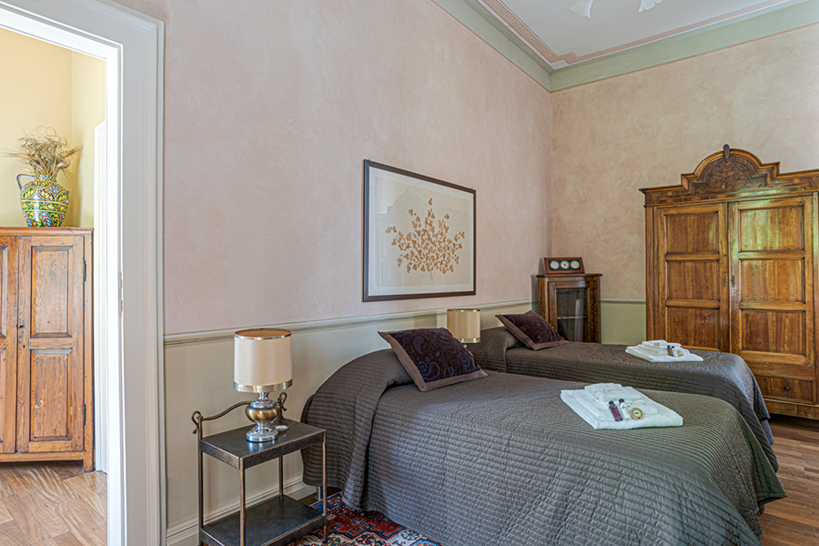 - Green bedroom (double bed) sharing the bathroom of Beige Suite