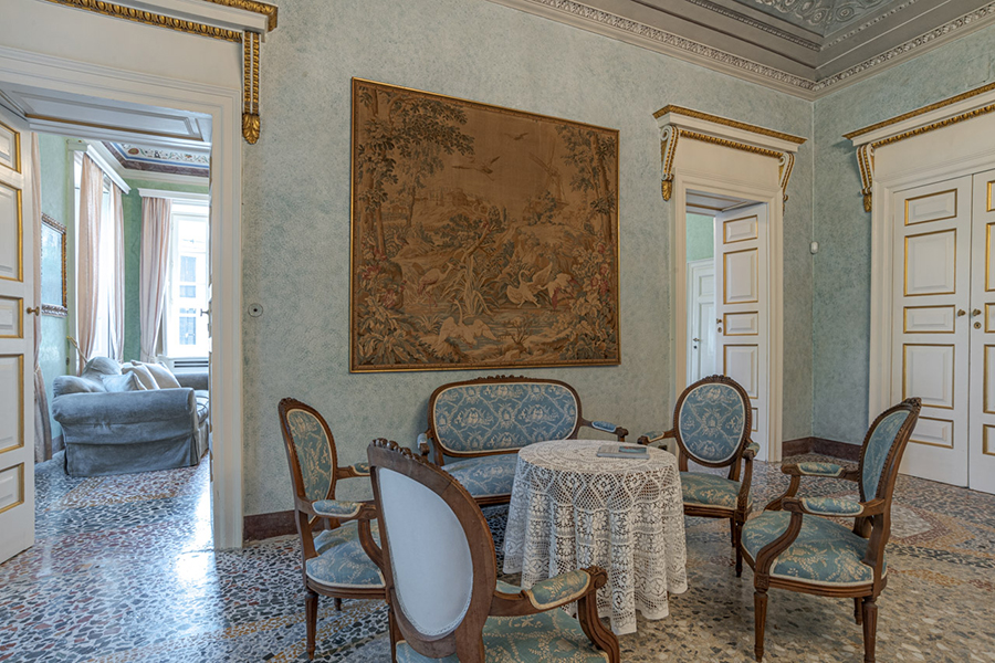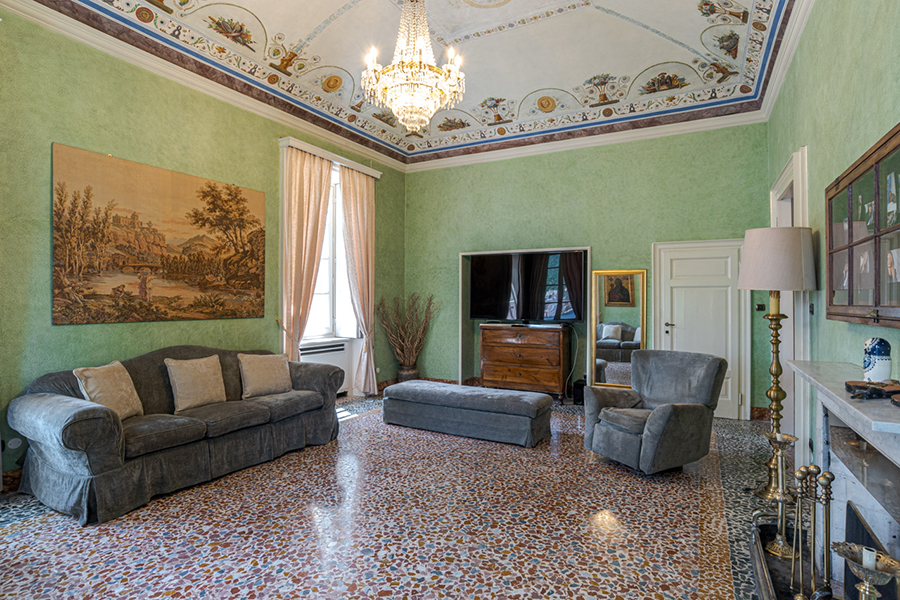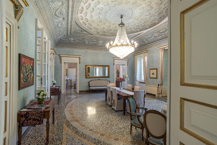 - Main formal salon (700 sq ft) with original fresco & mosaic floor