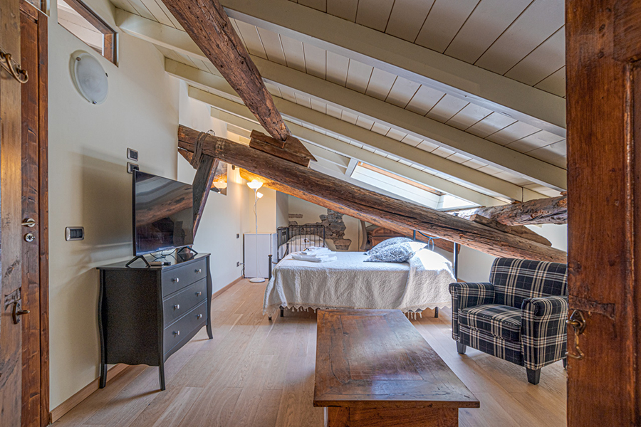 The apartment has exposed roof timbers and antique floors. The apartment is located 70 meters from lake's edge, measures 140 square metres, the bedrooms and the living room are fully air-conditioned, has hi-speed WIFI Internet, washing machine and dryer.