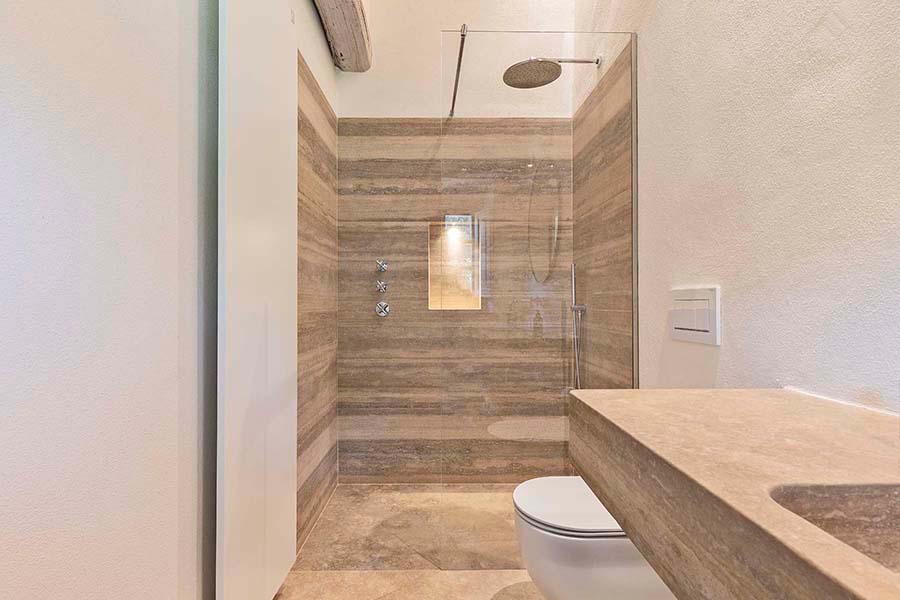 - 2 light and airy double bedrooms, each with its own modern travertine bathroom