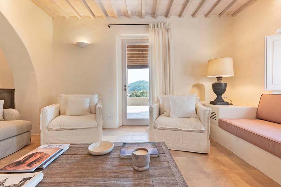 - 1 luxurious master suite with three sets of French doors leading to the olive grove and large en suite bathroom