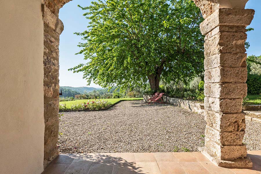 - Manicured garden bordered by olive trees and with soaring views over the rolling hills
