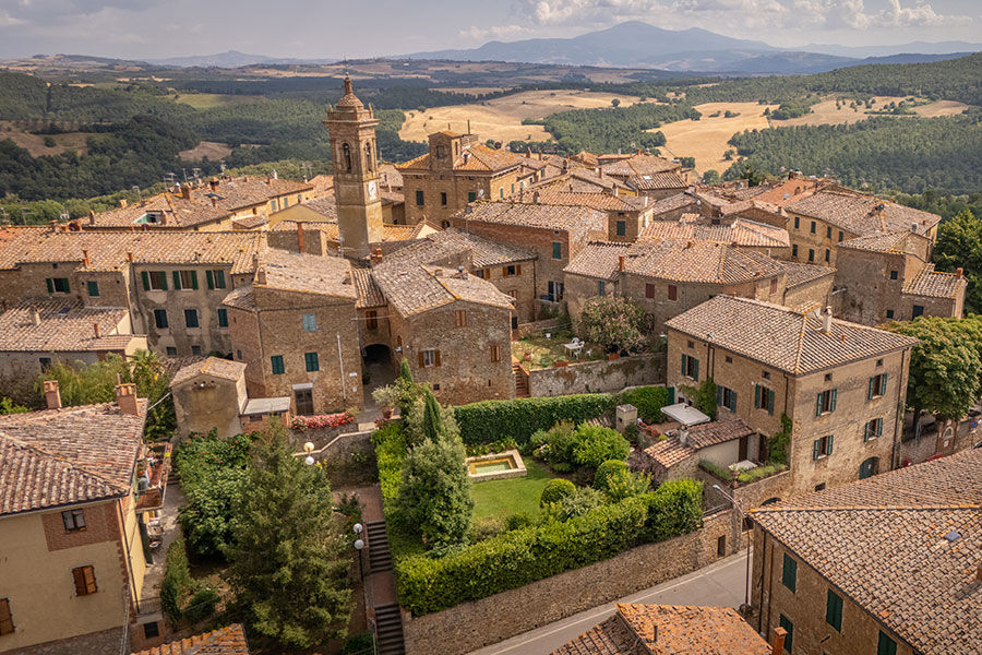 San Quirico: In the heart of the Val d’Orcia, nestled amidst hills of incomparable beauty, sits an ancient village that probably dates back to the Etruscan era, immersed in a landscape dotted with olive groves, vineyards and oak forests. The territory is one to be admired for its perfect balance honed over the years between the natural landscape and man-made marvels. San Quirico d’Orcia, with its splendid fortresses and medieval parish churches, is in this area so famous for its stunning landscapes - one of those places that must absolutely be visited if you’re in this enchanted territory. Among the must-see attractions are the parish church of San Quirico, a Romanesque building that preserves an altarpiece painted by Sano di Pietro, a 15th-century painter of the Sienese school, and, in the town’s central piazza, the Church of San Francesco, whose interior contains several Gothic elements. The center of the town is particularly picturesque thanks to the inviting paved streets and beautiful stone fountains. Something that stands out in the history and, partly, the appearance of the town is the fact that it sits along the Via Francigena, whose importance for San Quirico is evidenced by the presence of the Ospedale della Scala, where pilgrims were once offered refuge. Visitors won’t be disappointed should they stop by the ruins of the Cassero tower and the Horti Leonini, a typical 15th-centuy garden that can be accessed through an entrance between the wall and the piazza.